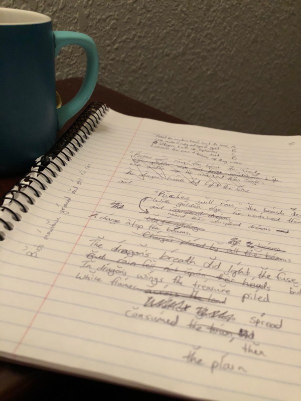 I think the last two stanzas are stronger than the first two, so I might work more on the first two tomorrow. It’s getting late now, though, so it’s time to call it a night.